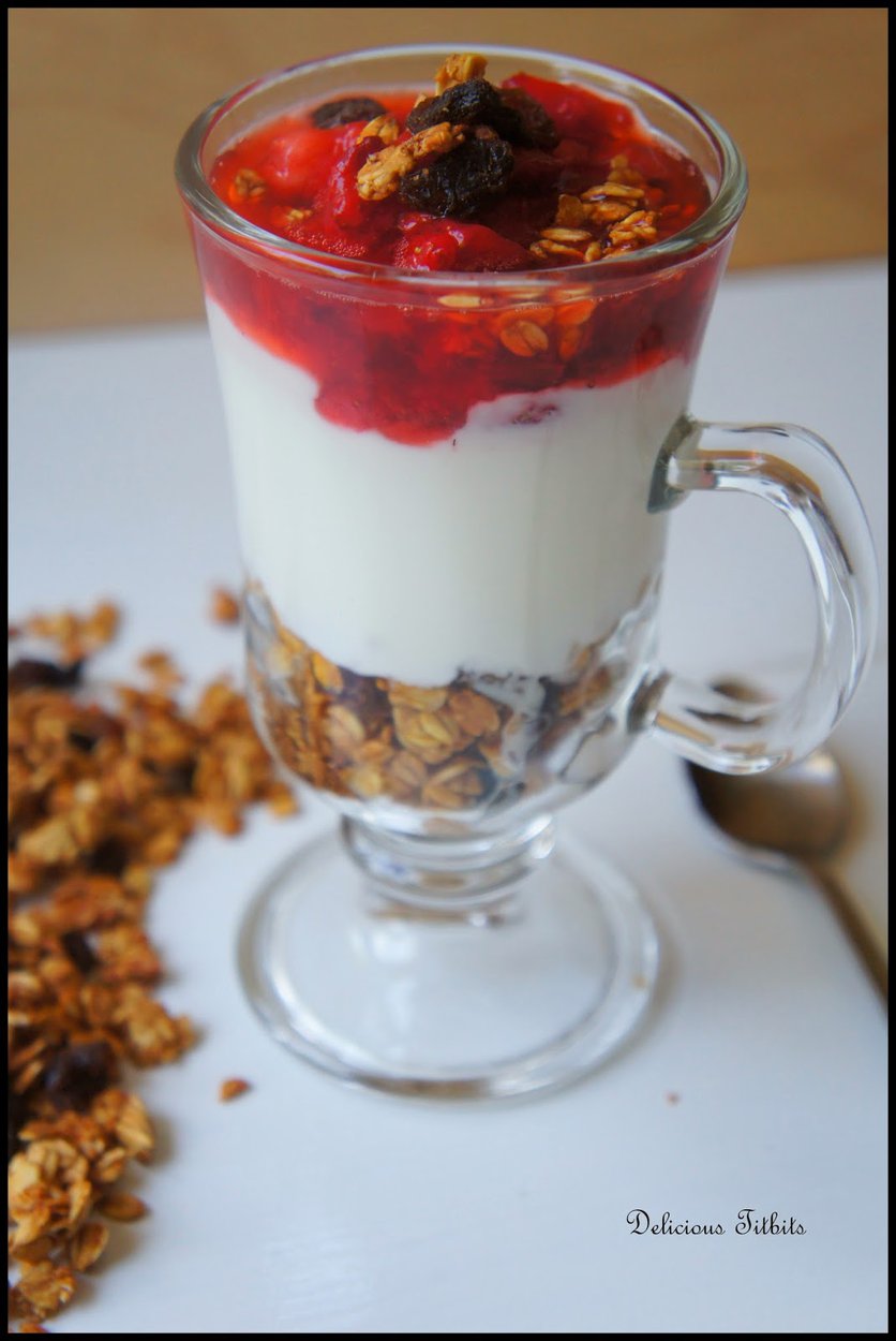Jogurt mieszamy z odrobiną miodu, a truskawki kroimy na drobne kawałki, posypujemy cukrem i odstawiamy na chwilę, żeby puściły sok. Wszystko układamy warstwowo tak, jak lubicie :)