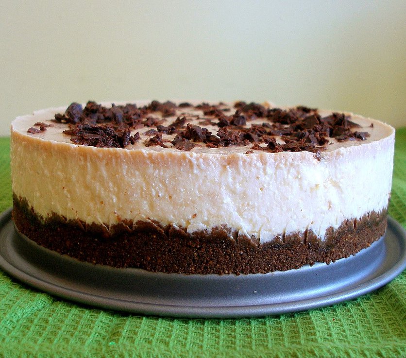 Ciastka wrzucić do robota kuchennego lub rozdrabniacza i rozdrobnić. Przełożyć do miski i dodać masło orzechowe. Wyrobić jak byśmy chcieli zrobić kruszonkę, czyli połączyć palcami, tak aby masło dobrze się wymieszało z "ciastkowym piaskiem". Jeśli ktoś ma duży robot może ciastka odrazu połączyć po zmieleniu z masłem. Wyłożyć na dnie tortownicy i mocno ugnieść pięścią. Wstawić do lodówki. W tym czasie rozrobić żelatynę wg. opisu na opakowaniu. Banany rozgnieść widelcem, w oddzielnej misce rozgnieść twaróg lub zmielić w maszynce. Wymieszać dokładnie twaróg z bananami, jogurtem, miodem i żelatyną (najlepiej za pomocą miksera). Masę wylać na wcześniej przygotowany spód. Z wierzchu posypać startą lub posiekaną czekoladą. Wstawić do lodówki na noc.