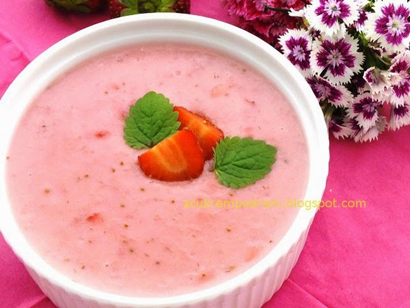 1 szklankę mleka zagotowujemy z musem truskawkowymi i cukrami lub cukrem i miąższem z wanilii. Gotujemy krótko, około 2 minut.