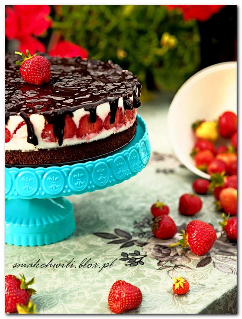 Sernik na zimno z truskawkami na czekoladowym spodzie