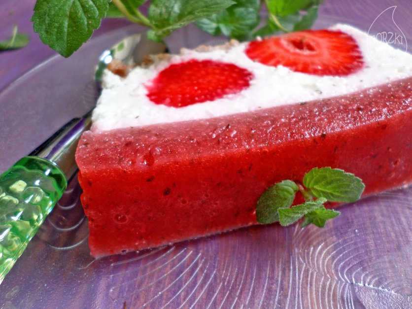 Sernik na zimno - kokos, truskawki, mięta z agarem