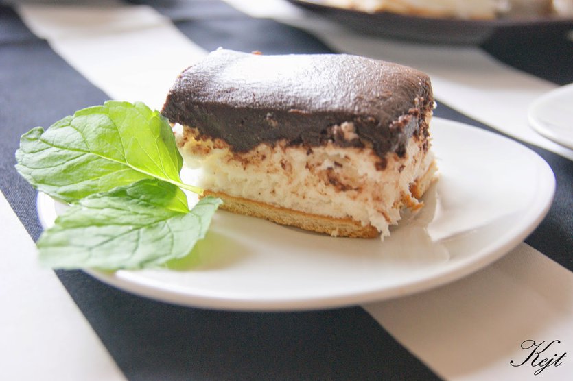 W kąpieli wodnej mieszamy wszystkie składniki, dobrze wymieszać i ostudzić. Jak zacznie tężeć należny polać ptasie mleczko i wstawić z powrotem do lodówki na ok 2-3 godzinki.