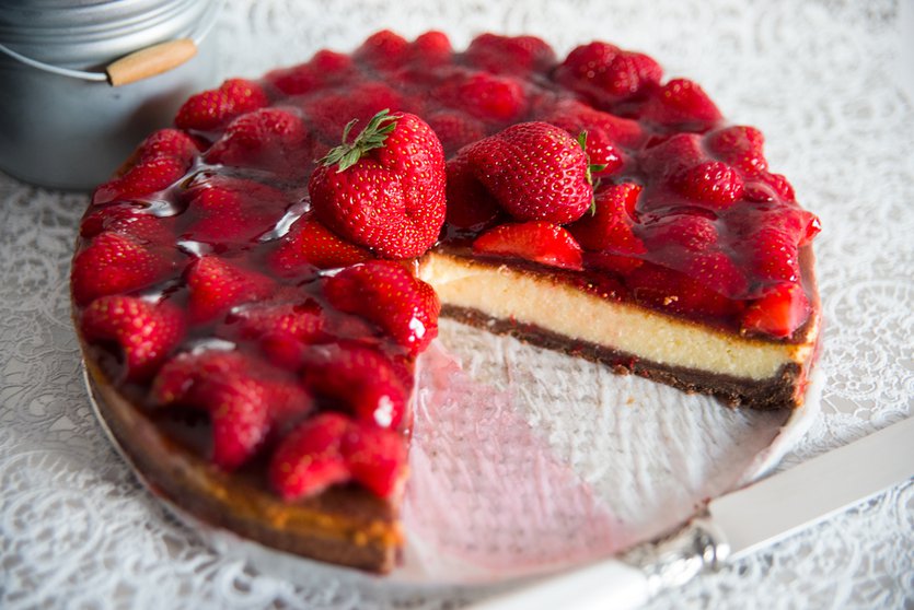 Schłodzone ciasto wałkujemy, wykładamy na blasze i nakłuwamy widelcem w kilku miejscach. Wstawiamy do piekarnika na około 15minut (180C). Wyjmujemy, wykładamy na podpieczony spód masę serową, ponownie zapiekamy - około 1 godziny w tej samej temperaturze.