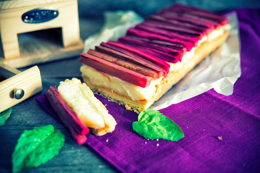 Kruche ciasto z rabarbarem i budyniem