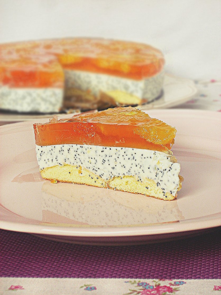 Żelatynę zalać gorącą wodą, wymieszać i odstawić do ostudzenia. Twaróg zmiksować z mlekiem skondensowanym i skórką pomarańczową, dodać mak i wymieszać. Następnie dolać żelatynę i jeszcze raz szybko zmiksować.