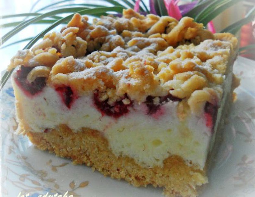 Ciasto z pianką i malinami