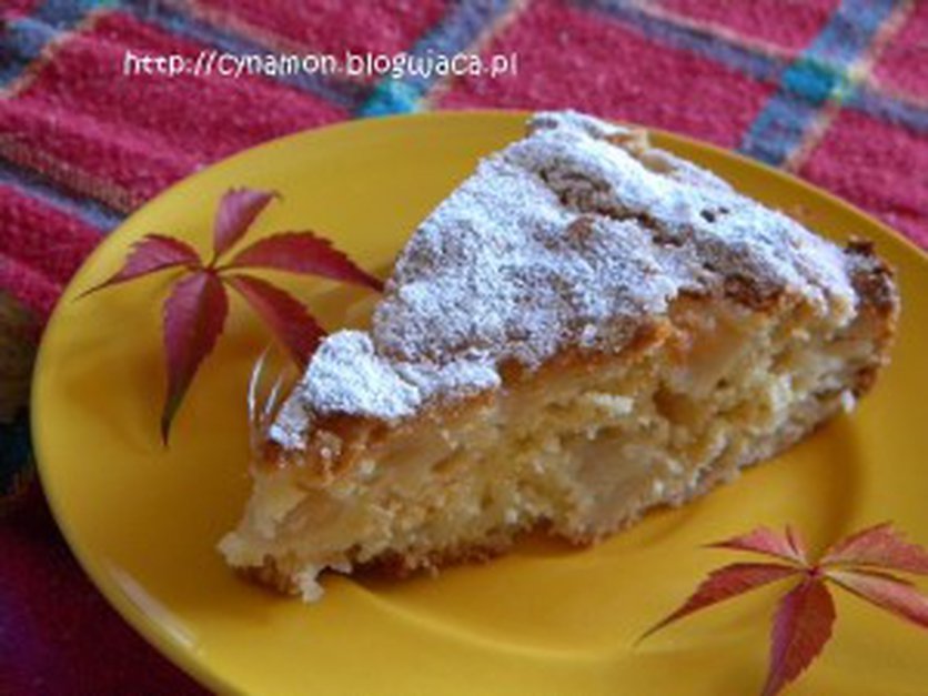 Oba rodzaje mąki oraz proszek przesiewamy przez sito, dodajemy sól i mieszamy. Miękkie masło kroimy na mniejsze kosteczki i dodajemy do sypkich składników. Zagniatamy jak na kruszonkę. Dodajemy pokrojone jabłka, ubite wcześniej jajka oraz cukier. Wszystko razem mieszamy.