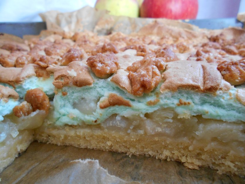 szarlotka z zieloną bezą