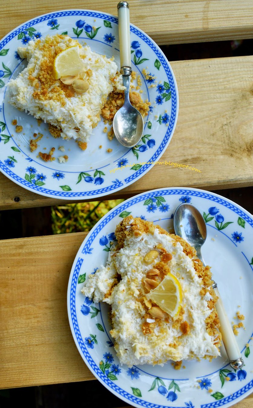 Kokosowy deser bez pieczenia na ciasteczkowym spodzie