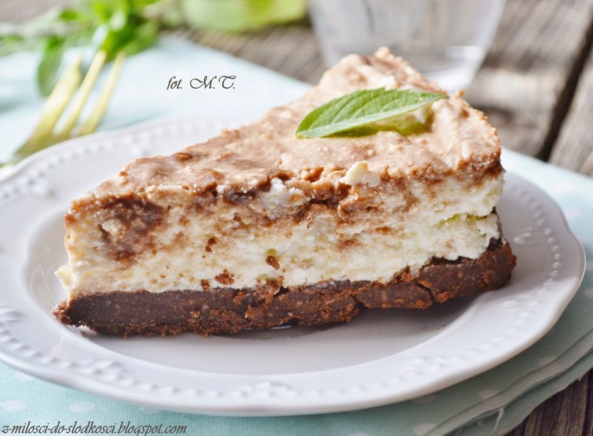 Herbatniki zmielić w blenderze na pył. Margarynę stopić, przestudzić i dodać do ciastek. Krótko zmiksować. Wyłożyć na dno tortownicy o śr. 21cm. Schłodzić.