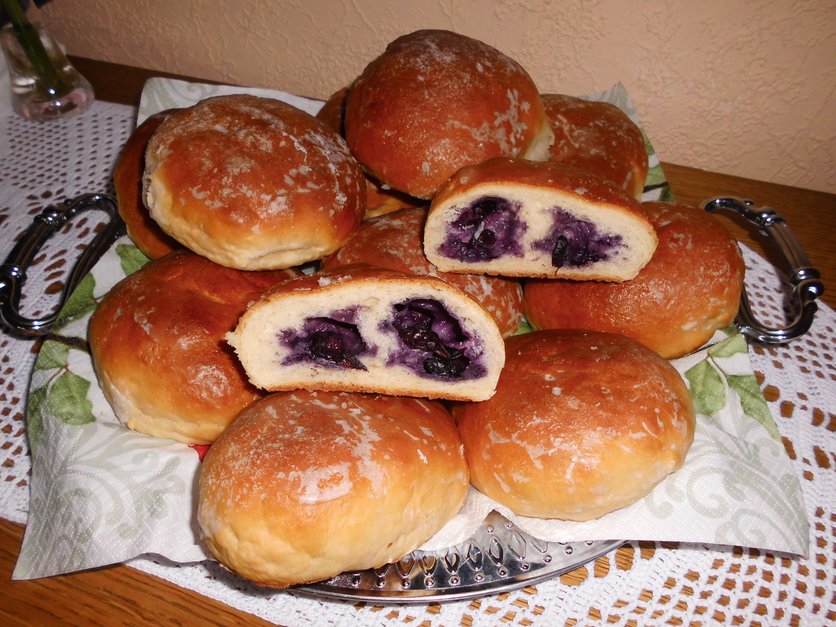 Buleczki drozdzowe z jagodami.