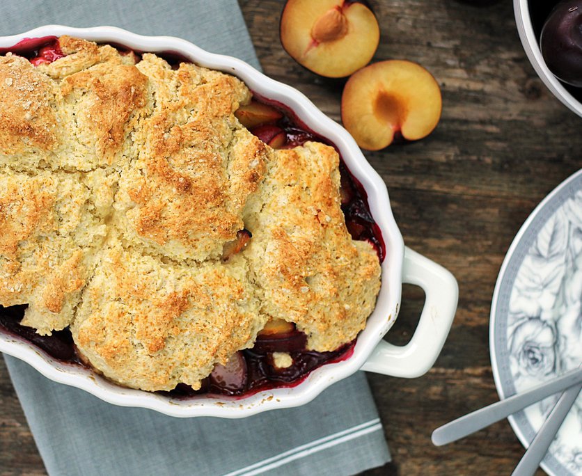 Śliwkowy cobbler, czyli śliwki zapiekane pod ciastem