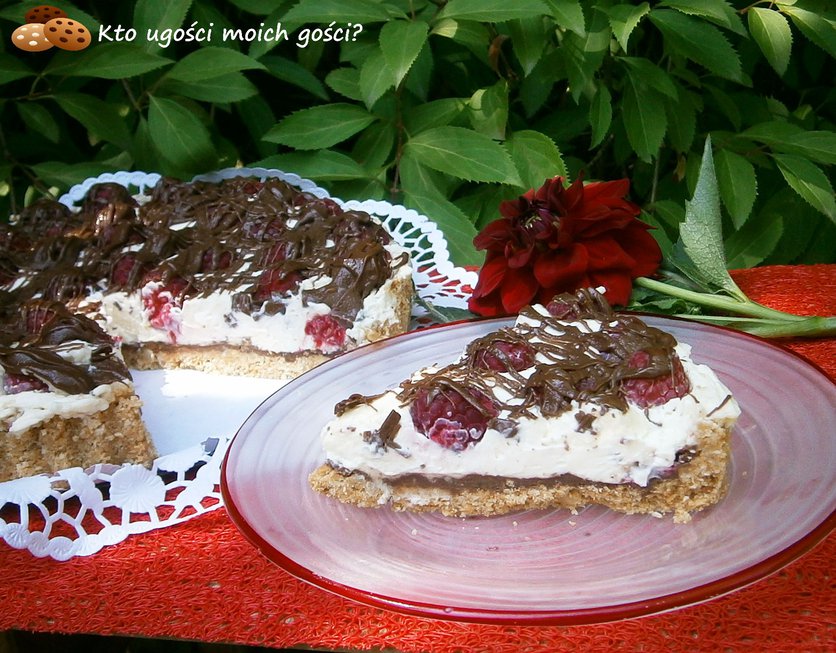 Tarta śmietankowo-czekoladowa z malinami (bez pieczenia)