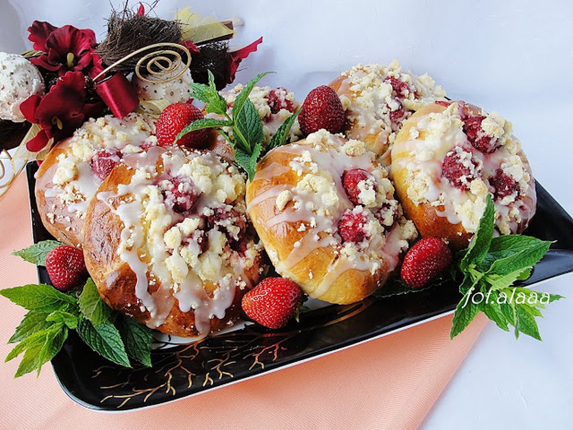 Drożdżówki z truskawkami