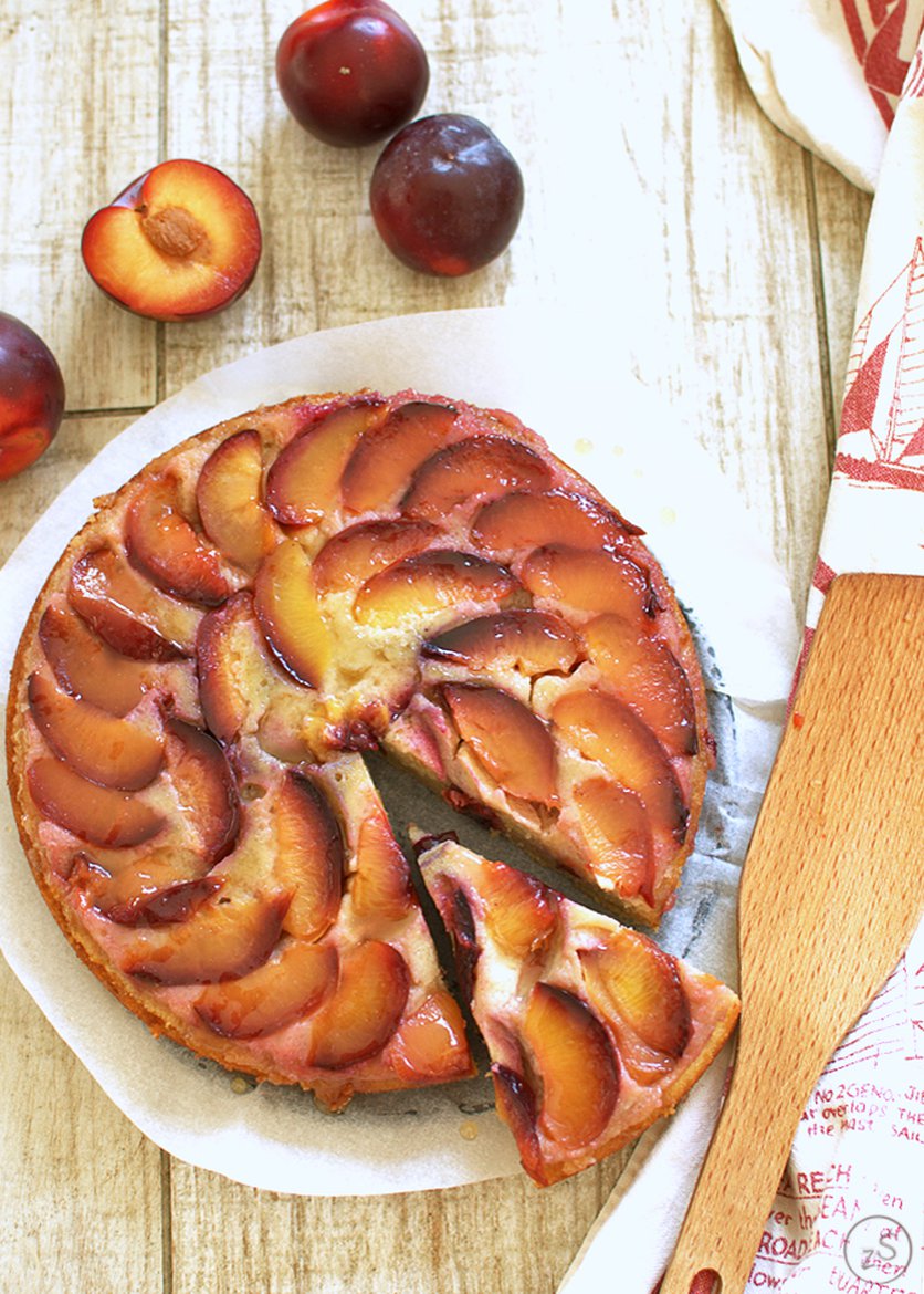ciasto ze śliwkami upside-down (odwrócone) z ricottą i migdałami