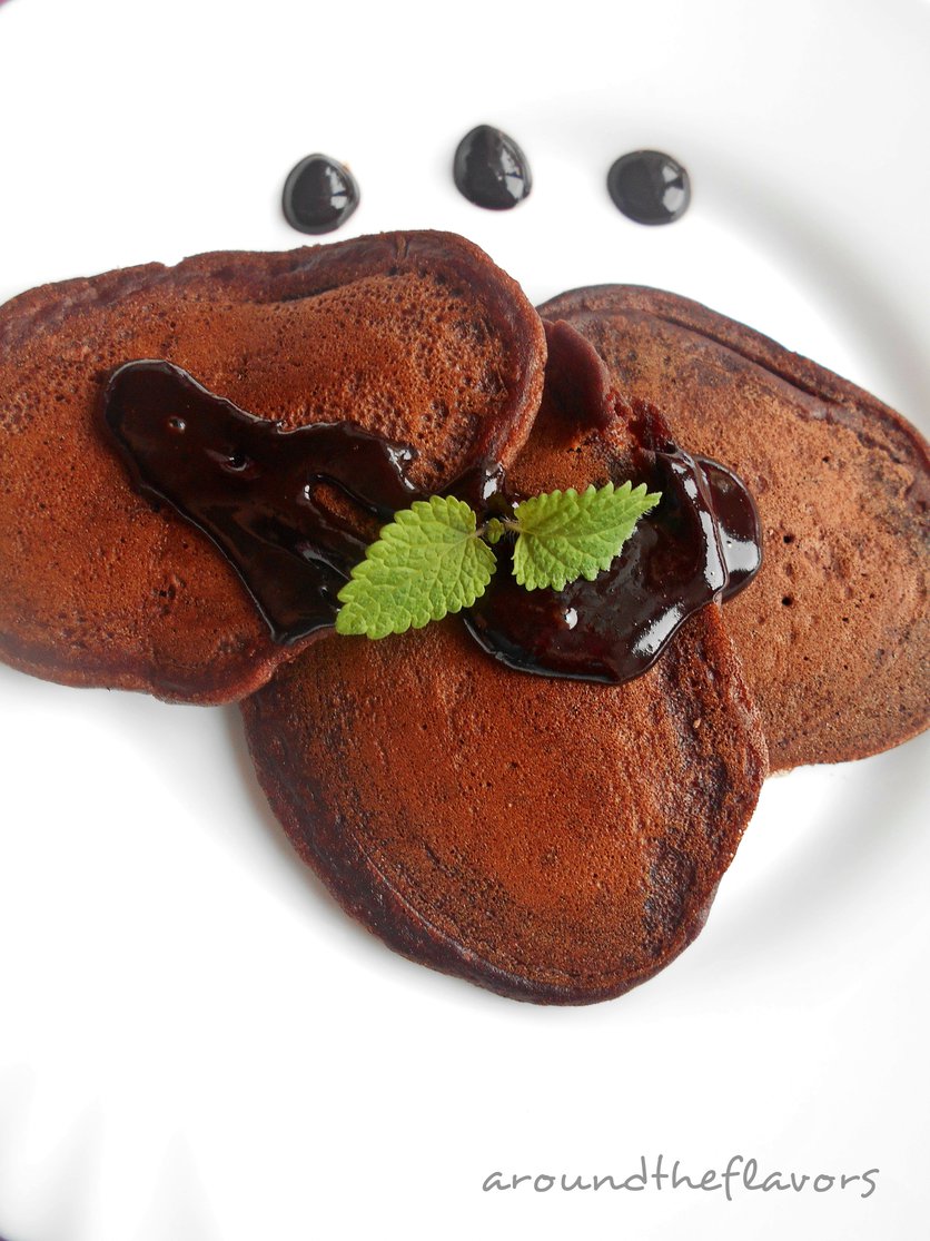 Do rondelka wsyp 1 łyżkę kakao,dodaj pozostałe kakao i cukier do smaku. Wymieszaj do uzyskania gładkiej konsystencji. Sos lekko zagotuj. Podawaj z placuszkami.