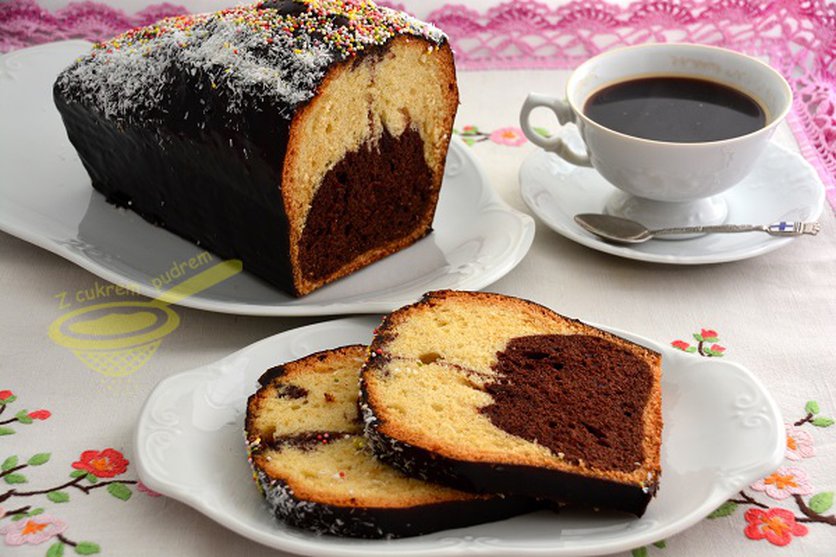 Ciasto podzielić na dwie równe części. Do jednej z nich dodać kakao, zmiksować.