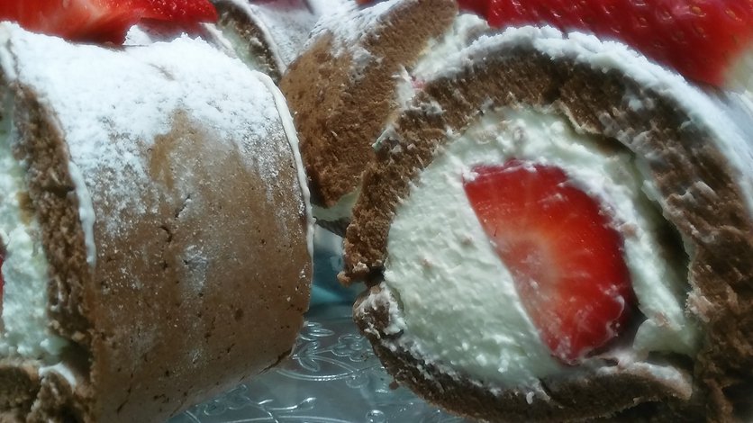 Rolada biszkoptowa z bitą śmietaną i truskawkami