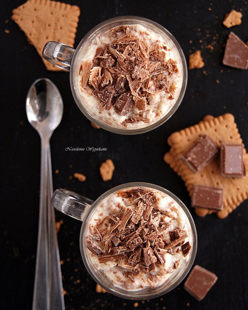 50 g deserowej czekolady, startej na drobnych oczkach+ odrobina do posypania deserów