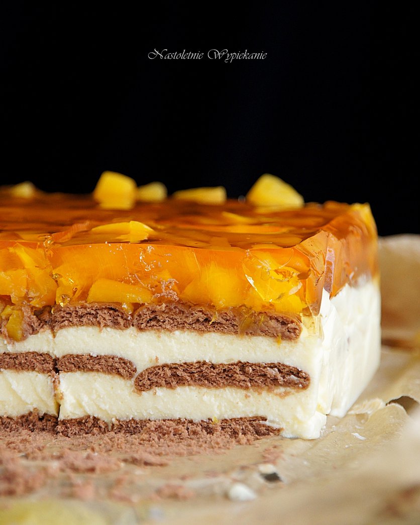 Sernik gotowany z galaretką i brzoskwiniami