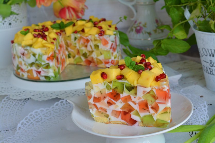 Kryształowy torcik z mango i granatem