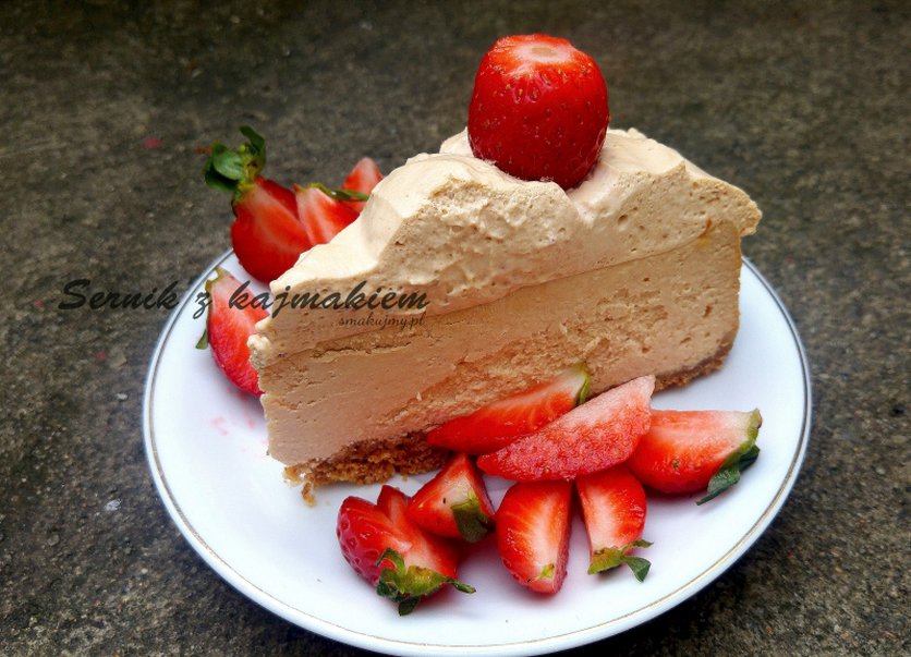 Sernik kajmakowy z bitą śmietaną i truskawkami