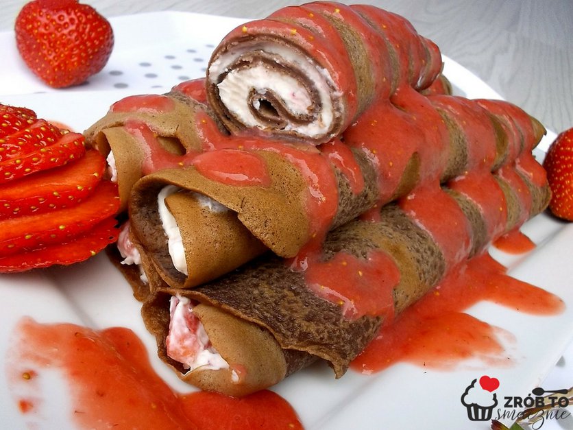 CZEKOLADOWE NALEŚNIKI Z SERKIEM MASCARPONE I TRUSKAWKAMI