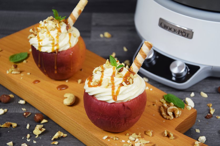 Duszone jabłka z piernikowym kremem i orzechami