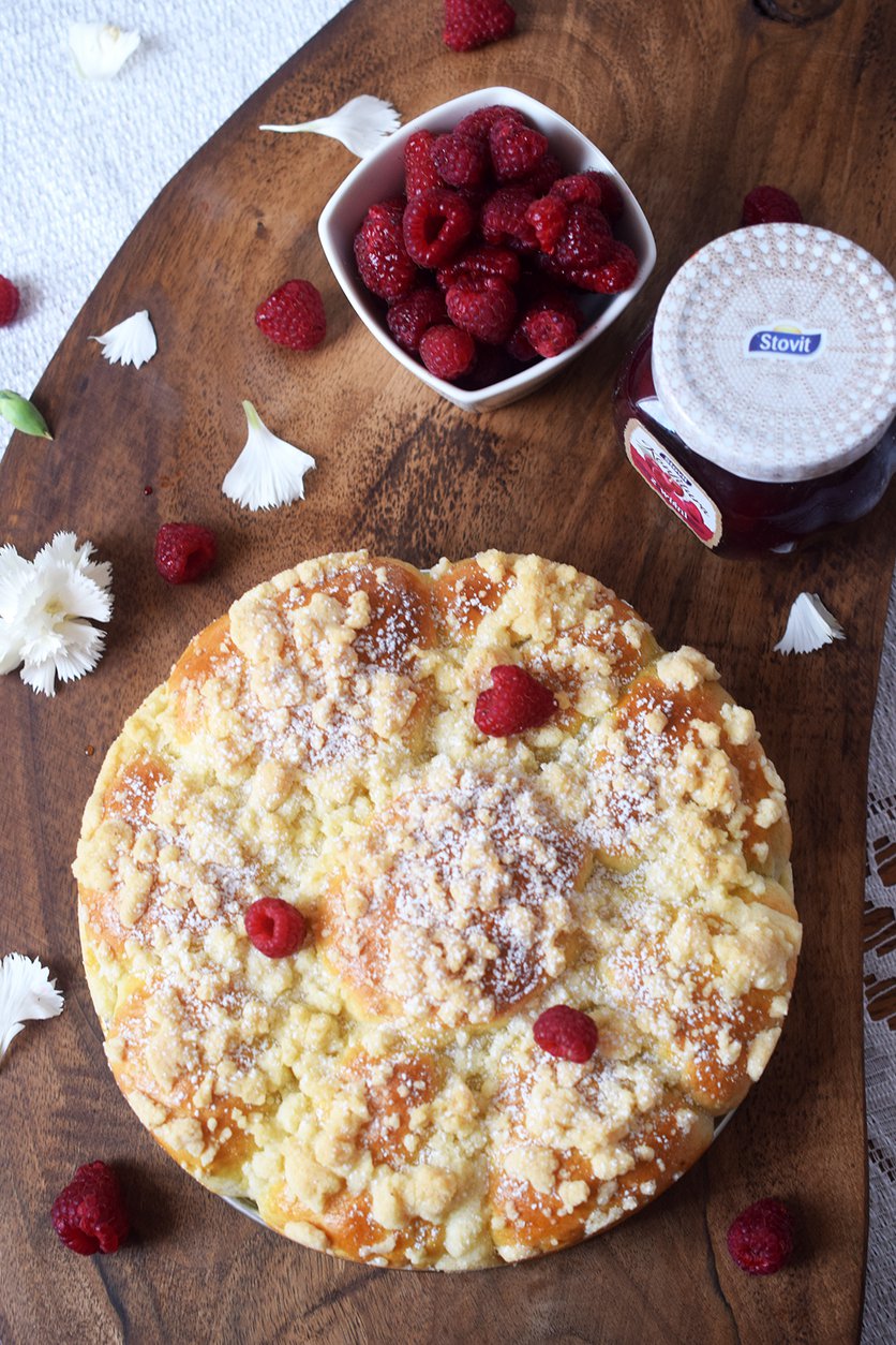 Odrywane bułeczki drożdżowe z malinami