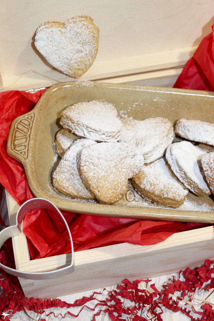 duża blacha, papier do pieczenia (polecam Stella), foremka do wycinania (u mnie w kształcie serduszka)