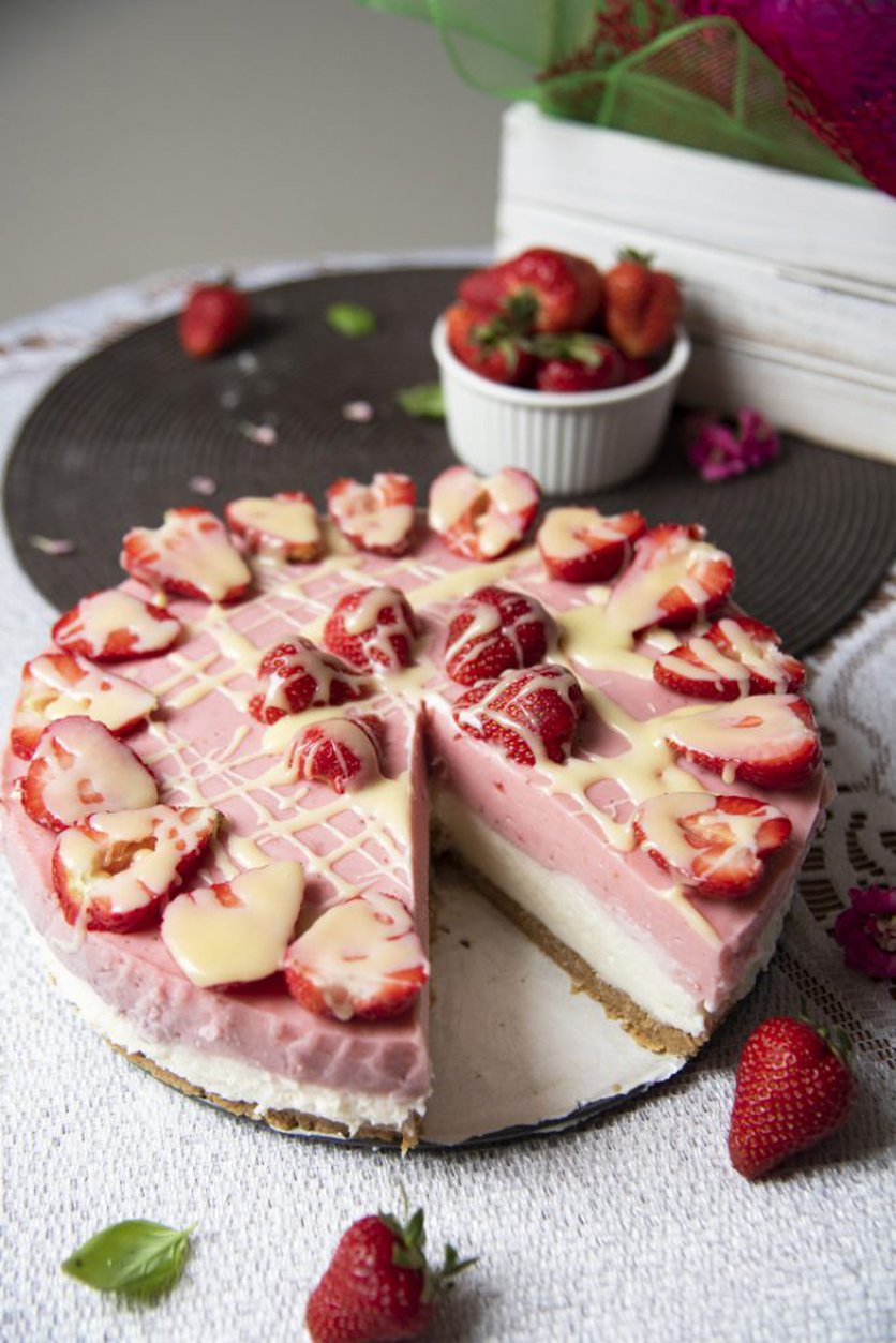 puszysty fit sernik na zimno z jogurtów greckich na kruchym spodzie