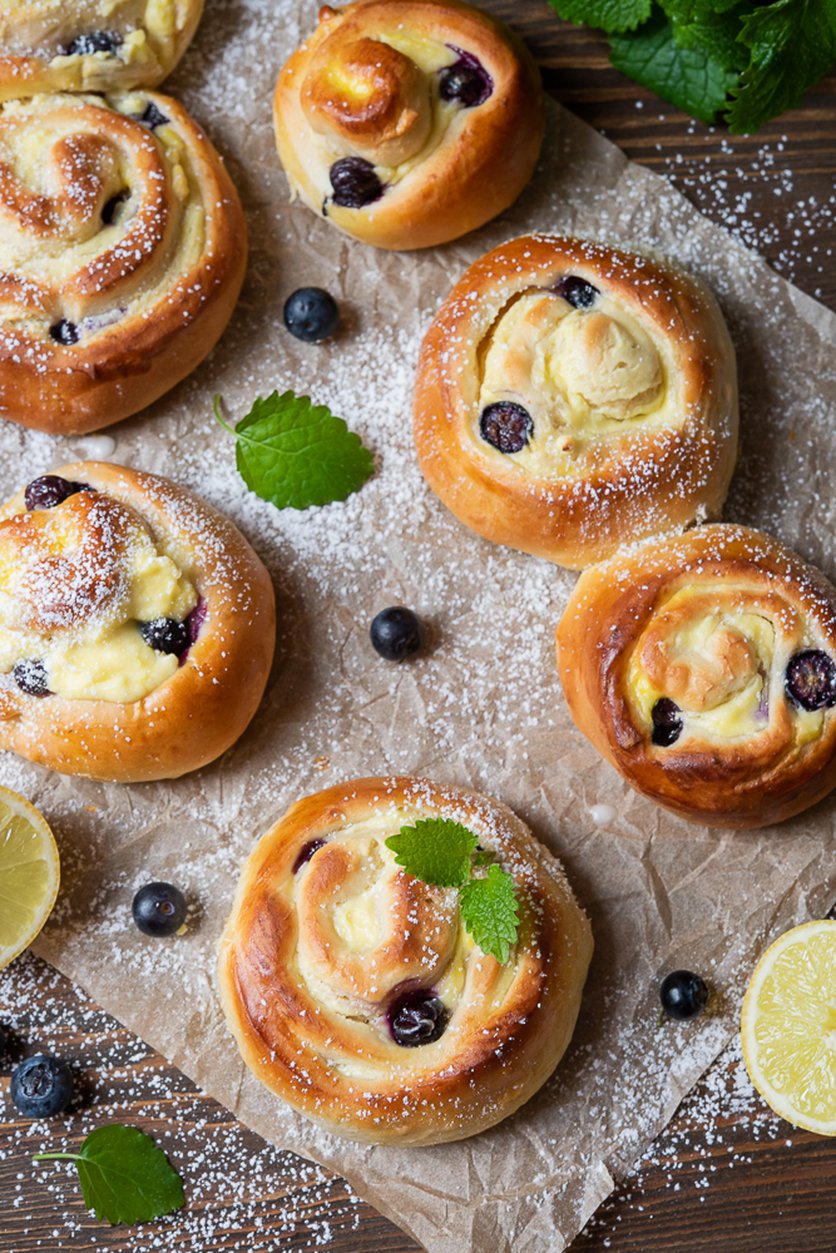 Drożdżówki z serem i borówkami