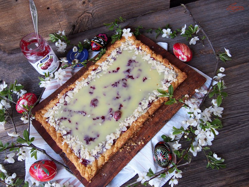 Mazurek z wiśniami i białą czekoladą