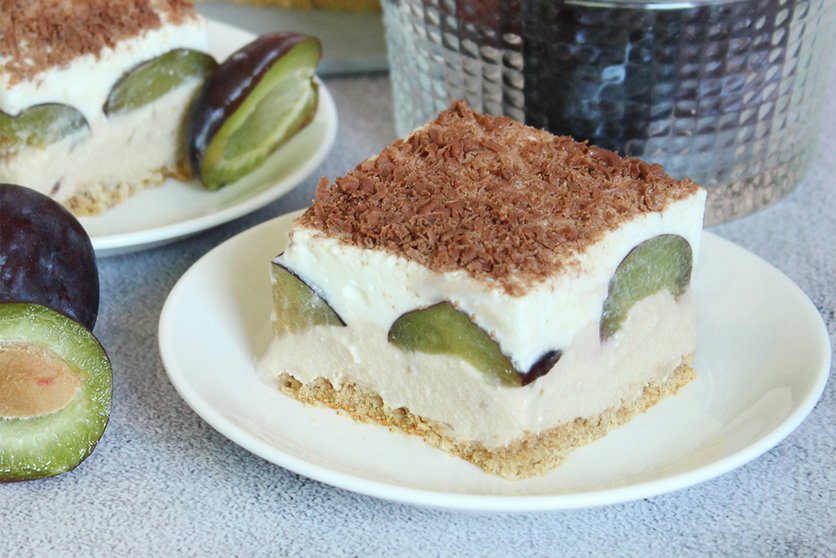 Śliwkowy sernik z waniliową pianką