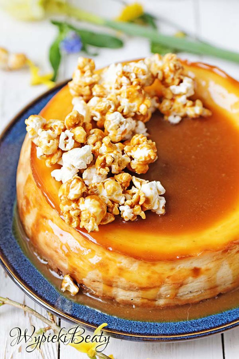 Sernik z sosem karmelowym i popcornem