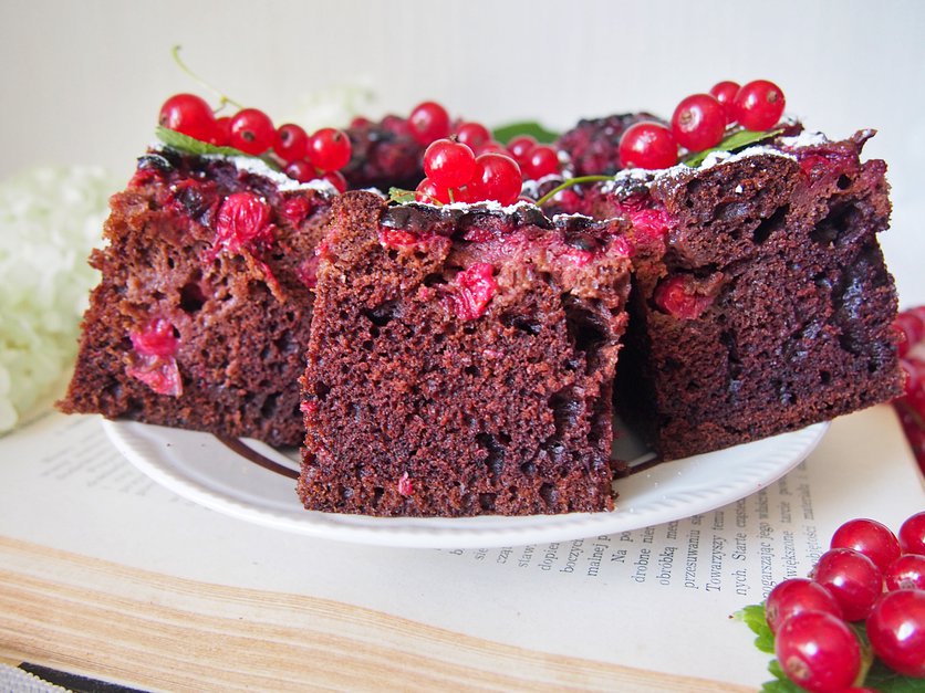 Czekoladowe ciasto z porzeczkami