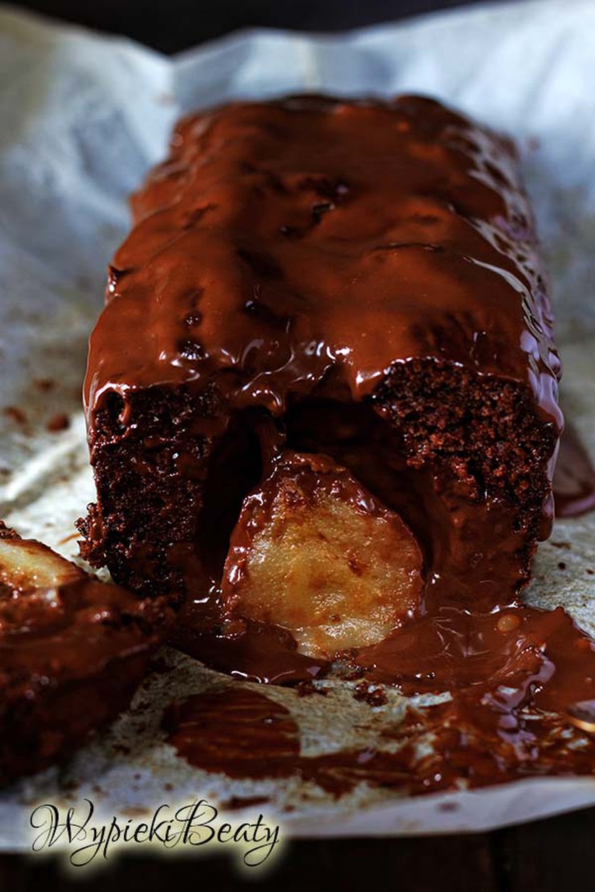 Przepis na mocno czekoladowe ciasto z całymi gruszkami