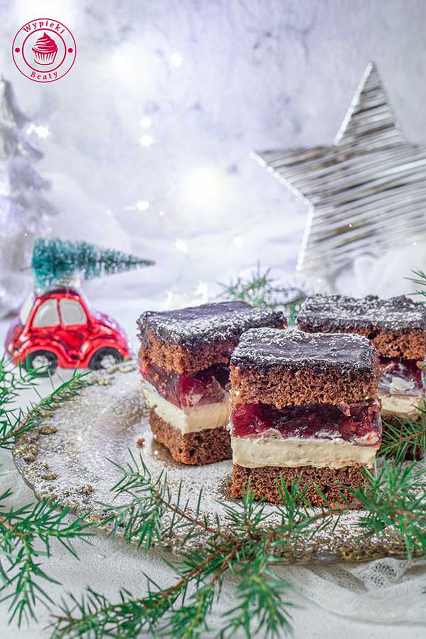 Przepis na ciasto piernik z wiśniami i kremem