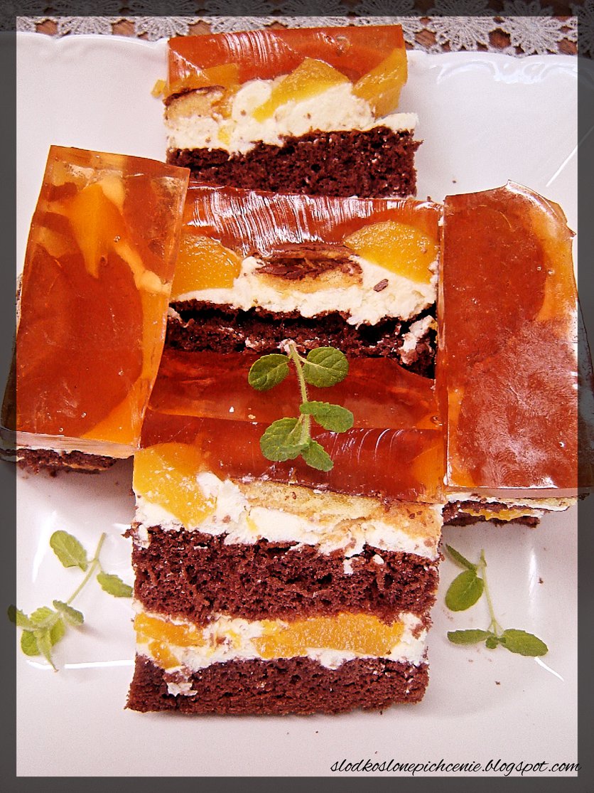 Sernik z brzoskwiniami na kakaowym kruchym cieście