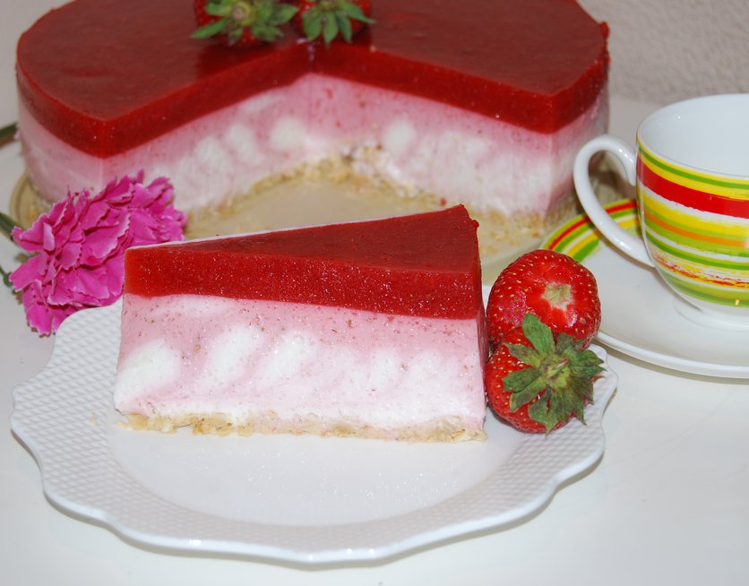 Łaciaty sernik truskawkowy (bez pieczenia)
