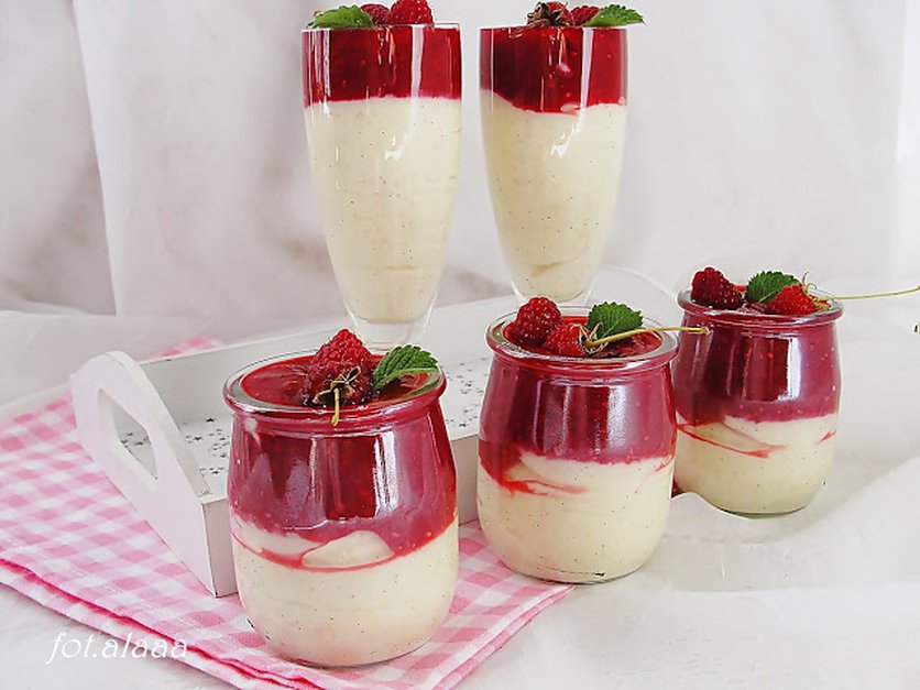 Deser z kaszy jaglanej z musem malinowym