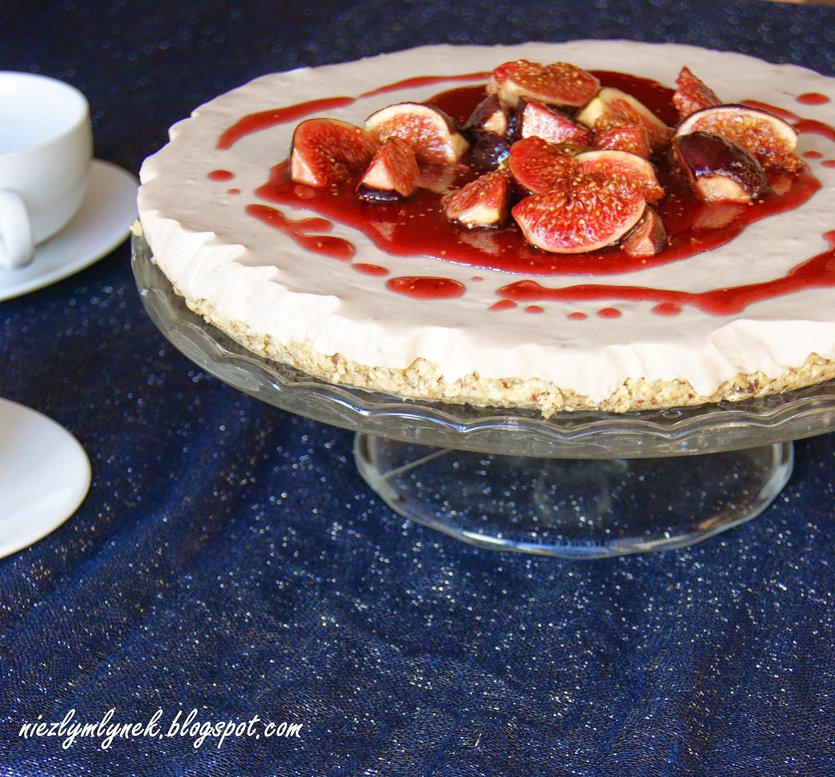 Fit Tort bananowo - figowy na spodzie owsianym z orzechami bez cukru