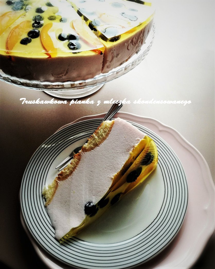 Truskawkowa pianka z mleka skondensowanego i galaretką