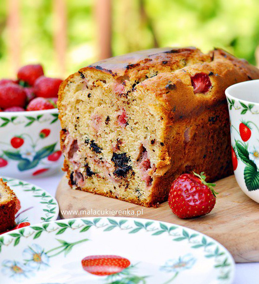 Mleczne ciasto z truskawkami i czekoladą