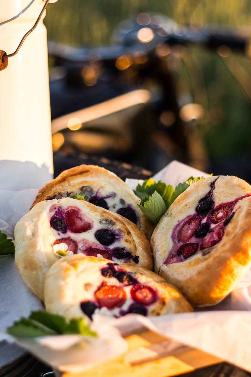 Pełnoziarniste drożdżówki z serem i owocami