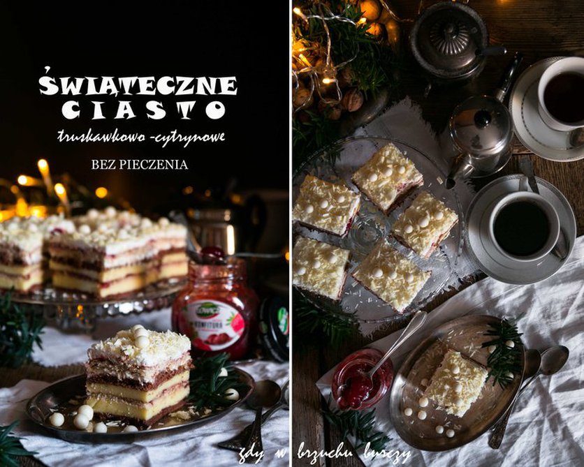 Świąteczne ciasto truskawkowo – cytrynowe bez pieczenia