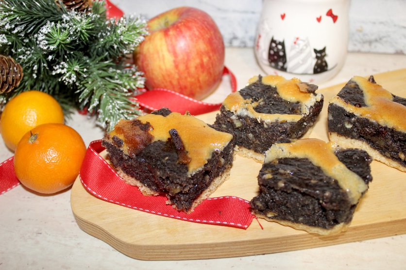 Mazurek królewski z makiem,jabłkami i orzechami