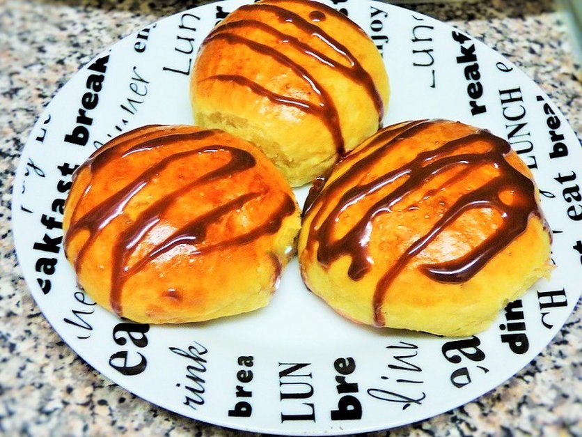 Drożdżówki z dżemem i polewą czekoladową