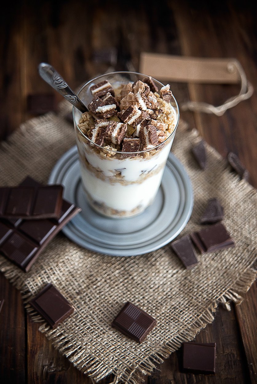 Chrupiący deser jogurtowy z granolą i batonikiem Knoppers