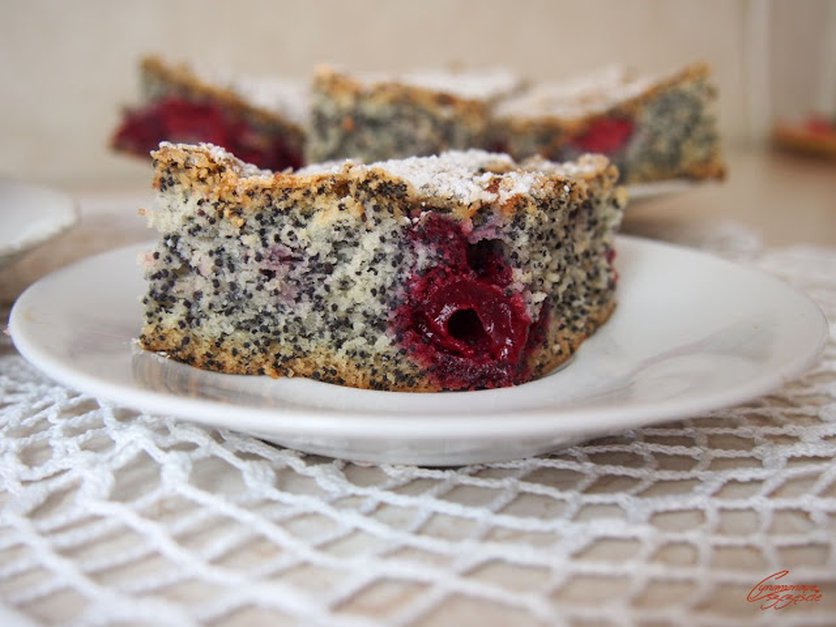 ciasto makowo - bezowe z wiśniami i pierwszy rok bloga
